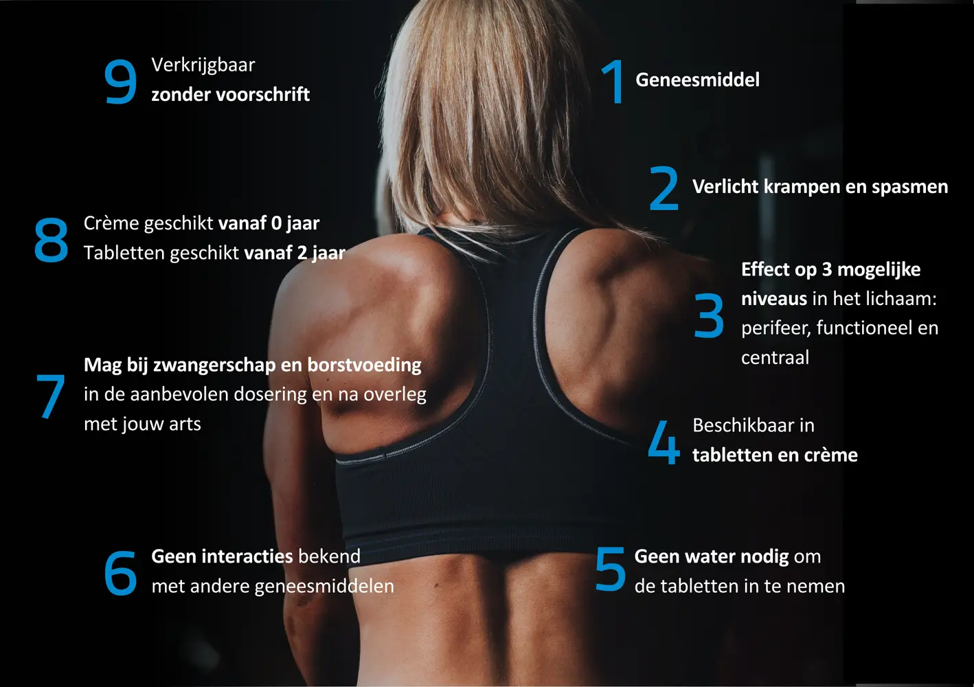 Bovendien ontspant Spascupreel® Tabletten niet enkel de dwarsgestreepte spieren (in benen, handen, nek, schouders, rug, …) maar ook de gladde spieren. Het is dus bijvoorbeeld ook te gebruiken bij pijnlijke darmkrampen of krampen door maandstonden.
